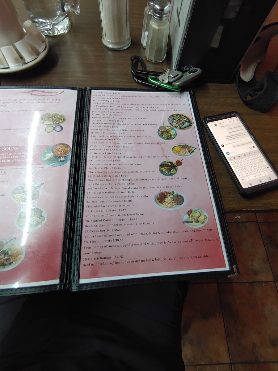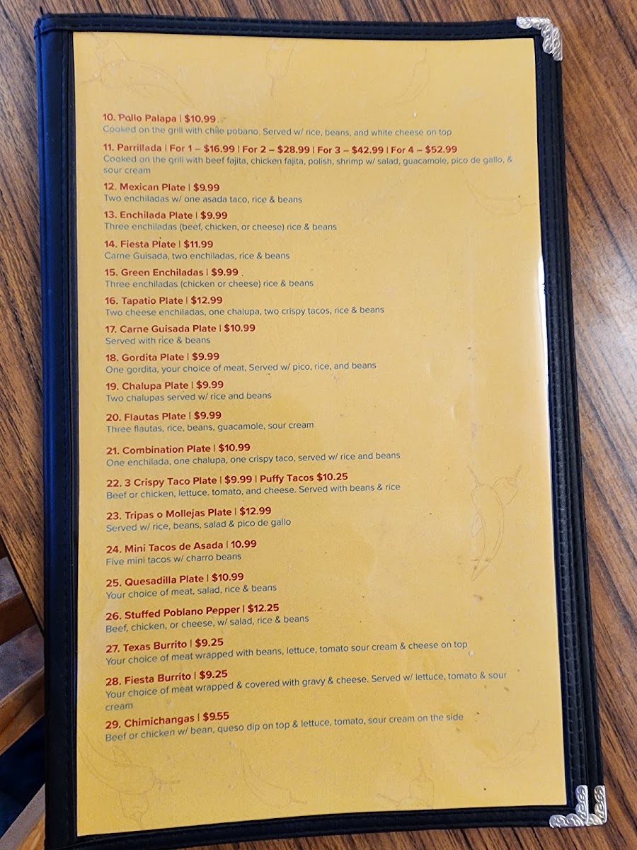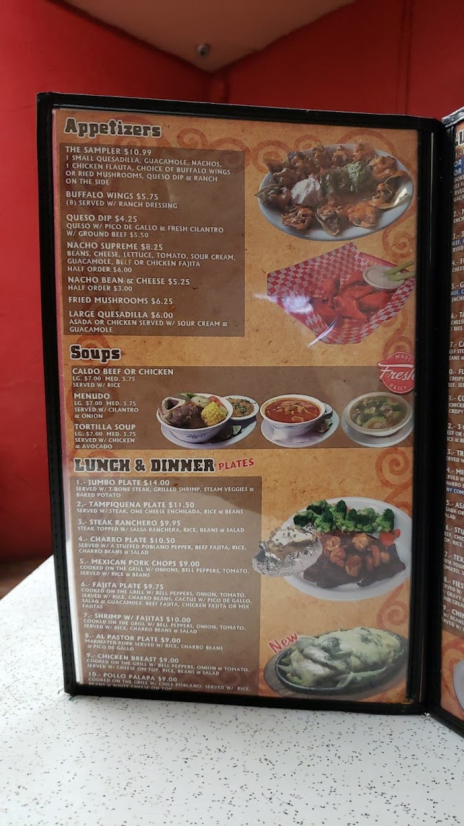 stuffed with white cheese and choice of meat, topped with salsa ranchera. Served with rice, beans, salad, guacamole and tortillas