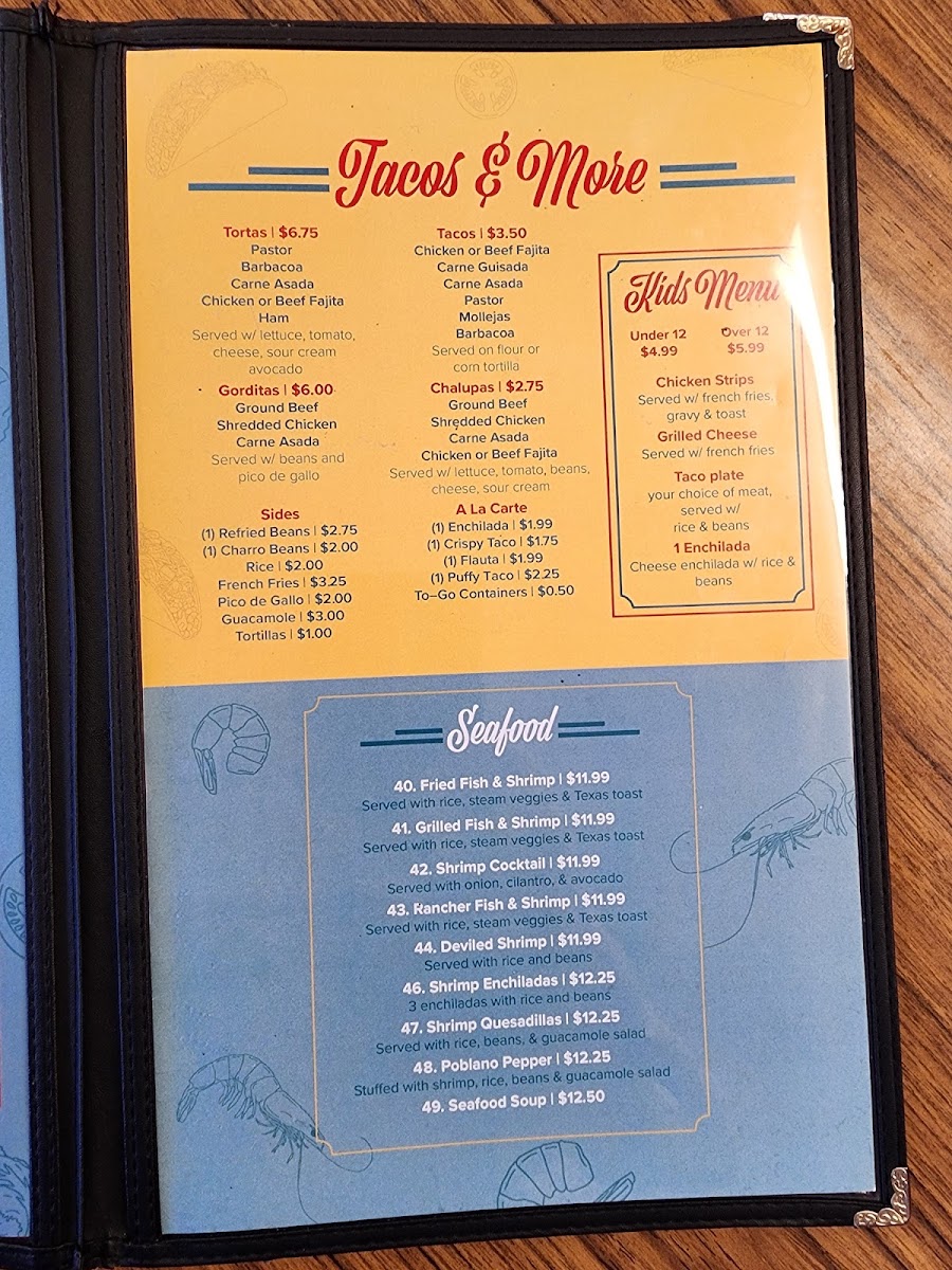 Beans, Cheese, choice of meat, lettuce, tomato, sour cream and guacamole